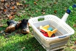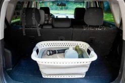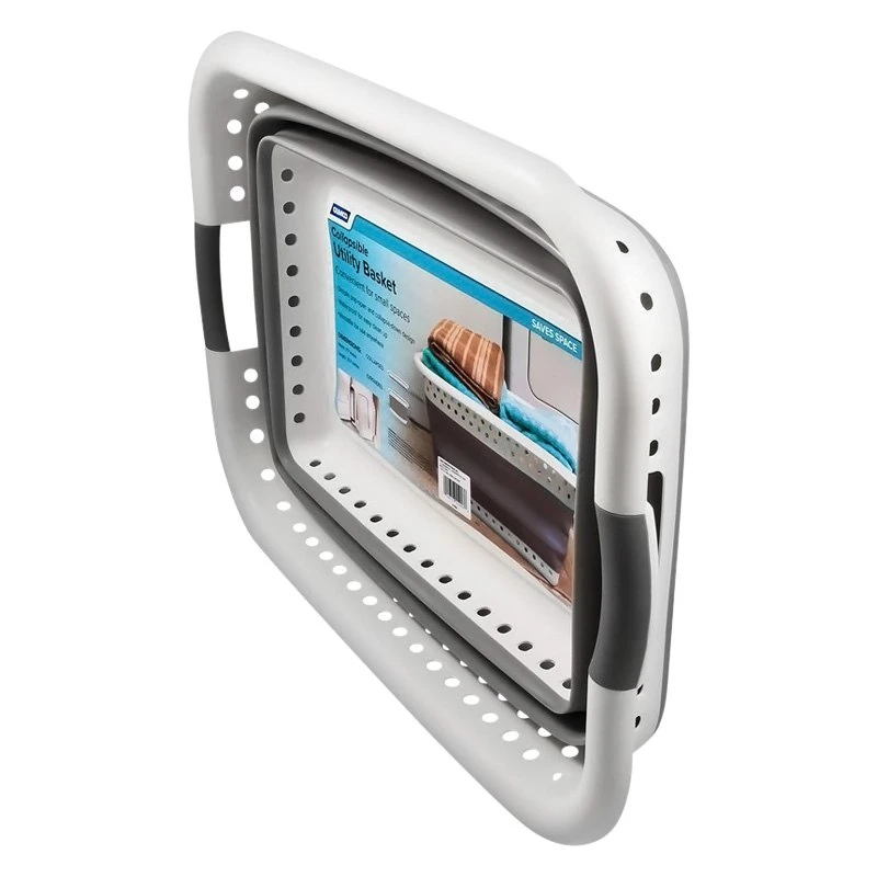 White/Gray Plastic Collapsible Laundry Basket (51903) by Camco®. The Camco Collapsible Utility basket is great for laundry or extra storage, and it collapses flat to hide when you don’t need it. The simple pop-open and collapse-down design is easy to use and versatile for anywhere. The entire basket is waterproof for easy cleanup, making it perfect for dirty jobs.