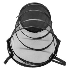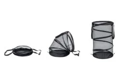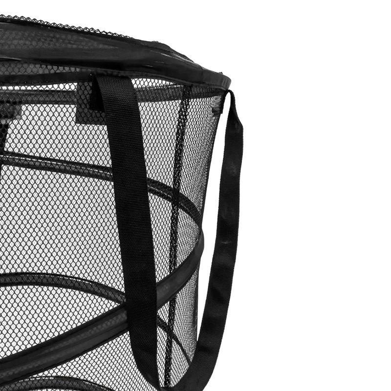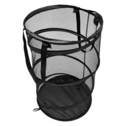 Black Fabric Pop-Up Laundry Bag by Camco®. The Camco Laundry Hamper is a lightweight option that springs open for use and collapses flat for storage, making it a great option for small spaces. Two tie down loops keep the hamper flat when not in use, and mesh sides allow for more airflow than standard laundry hampers. Durable carry handles make transporting laundry easy.