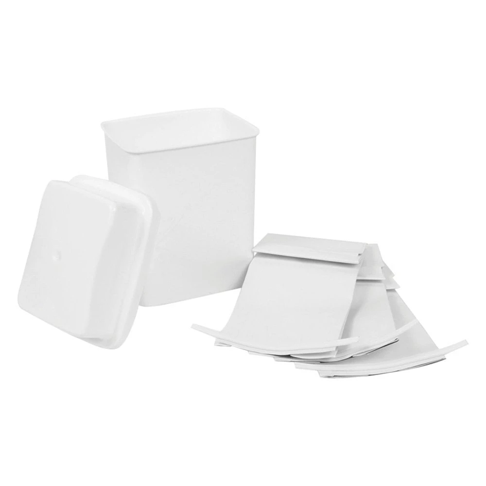 White Grease Storage Container by Camco®. Provides a convenient location to dispose and contain cooking grease. It helps stop your RV or marine kitchen drain from getting clogged. After cooking, simply pour the cooking grease directly into the foil-lined bag inside the container. The foil liner bag can hold liquids up to 200-degrees Fahrenheit. Once emptied, the bin will lock-in any odors until the bag is full and tossed in the trash.
