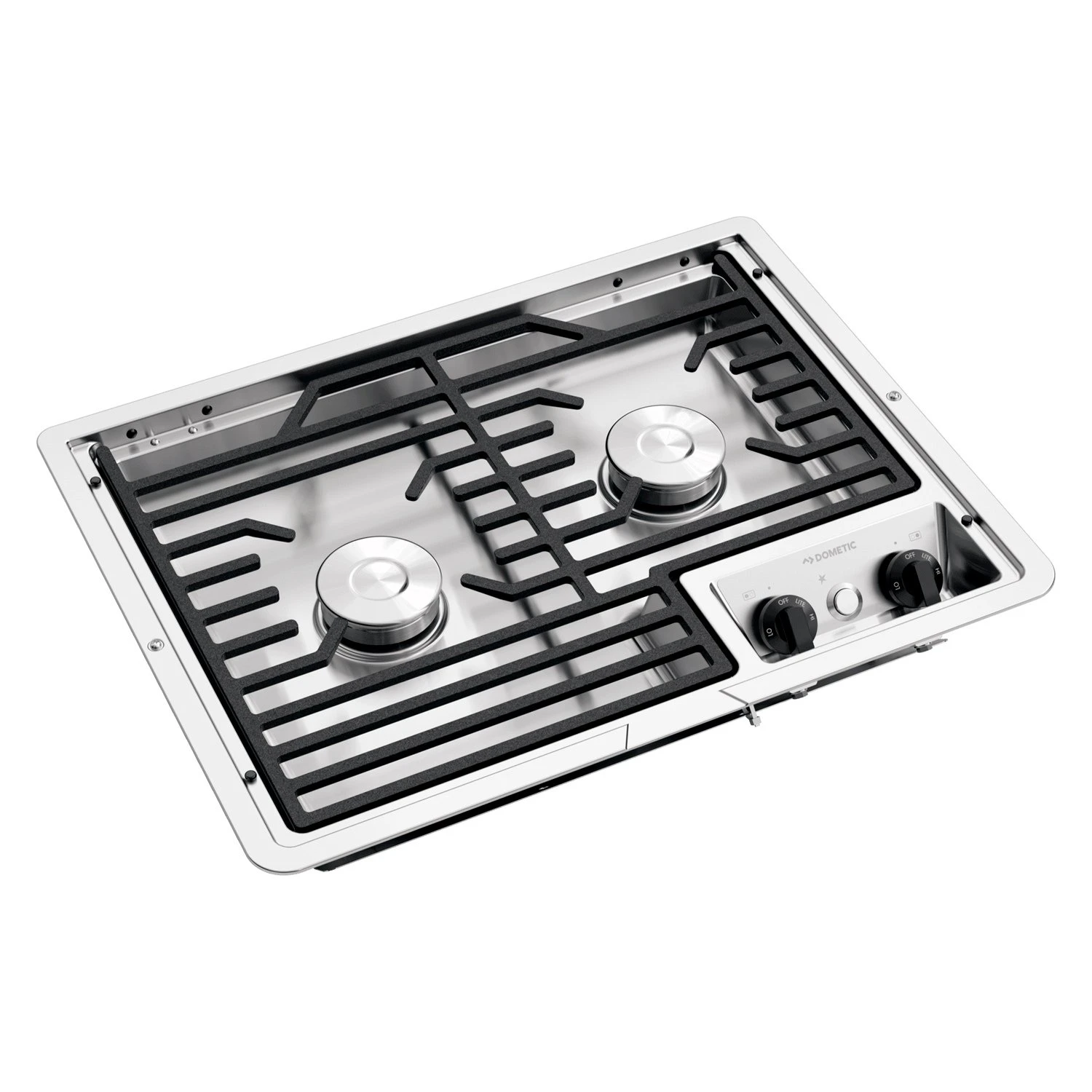 2 Burners RV Cooktop by Dometic RVĀ®. This cooktop will make a great addition to any motor home, truck camper, or outdoor kitchen. Ensure the comfort of hot meal, wherever you are. This slide-in cooktop is ideal for tight spaces. Delivering all the benefits of a high output cooker thanks to its powerful 7.200 BTU main burner.