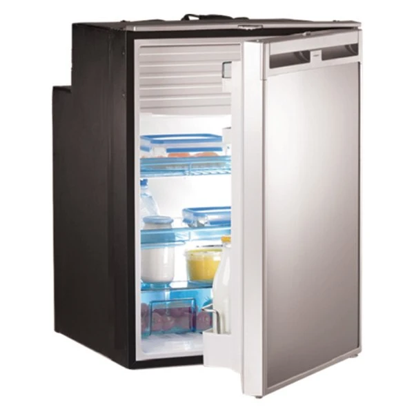 CoolMatic CRX™ 3.8 cu ft Stainless Steel Right Hand AC/DC Built-In Compact Single Door RV Refrigerator & Freezer with Fan (9105306133) by Dometic RV®. The compressor refrigerators in the CoolMatic CRX series are ingenious quick change artists. Their trick is no secret, but a patented Dometic invention. The desired temperature is set on the soft touch control panel which is mounted flush in the inner wall and elegantly integrates the LED light. There’s smart electronics behind it: the system regulates the compressor speed therefore achieving energy savings of up to 25 %. Small or medium-sized motorhome or boat, single person or big family – nobody has to go without a Dometic CoolMatic refrigerator.