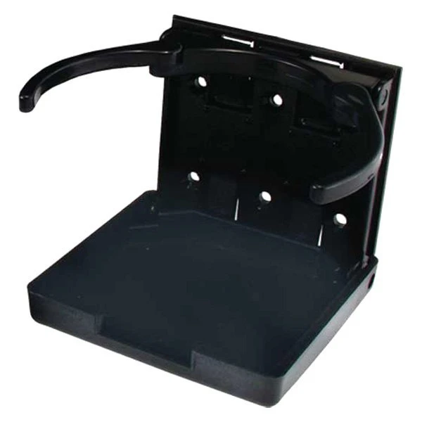 Black Plastic Adjustable Cup Holder (45619) by JR Products®. Do you need additional cup holders for your RV? Easily install these cup holders to any flush surface and conveniently fold them away when they are no longer needed. This sturdy and adjustable design can hold multiple cup styles, up to 44 fluid ounces.