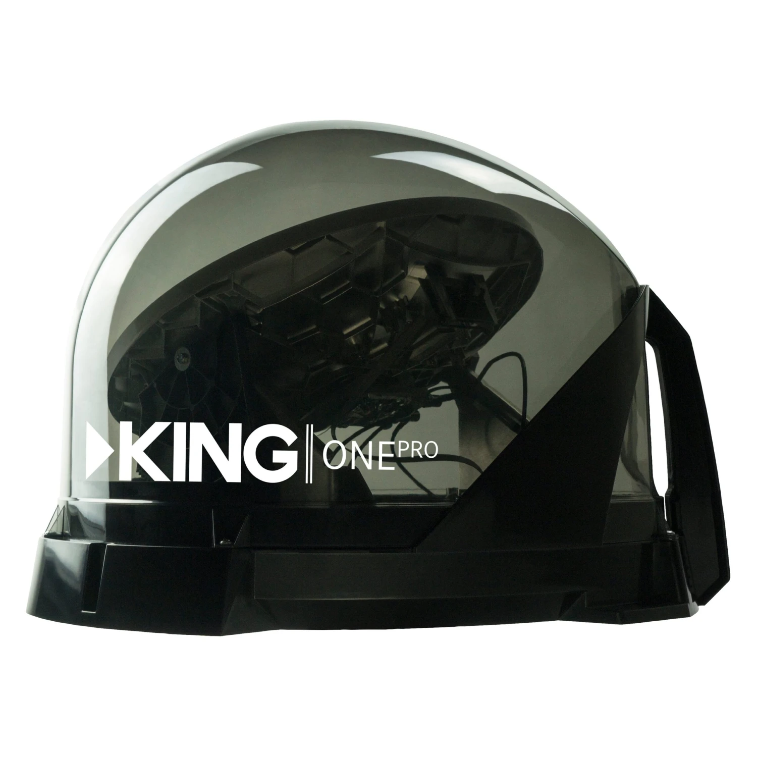 One Pro™ Portable 3 Receivers Satellite TV Antenna by King®. One antenna, all providers: Enjoy the KING One Pro™ advantage. With the introduction of next level satellite antenna technology, the KING One Pro fully automated premium satellite TV antenna gives you the freedom to take your favorite TV programming – on DIRECTV™, DISH™ or Bell™ (Canada) satellites – with you on the road, to the great outdoors, or anywhere you go. It’s the only antenna on the market that automatically configures for U.S. satellite service without the use of DIP switches – taking all the guesswork out of getting started. Ideal for RVers, sporting and outdoor enthusiasts, tailgaters, long haul truckers or anyone with an active mobile lifestyle. The KING One Pro is highly portable, easy-to-use, and includes our ultramodern clear cover – Always know where your antenna is pointing. It’s simply better, by design.
