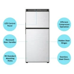 Polar™ 8 cu ft Matte Black Left Hand AC/DC Built-In Double Door RV Refrigerator & Freezer (N8DCBKL) by Norcold®. Delivers value, ease-of-use, abundant storage & exceptional styling. Bring the comforts of your home to your motorhome with this top-notch RV appliance to make your camping experience more enjoyable and free of worries. It’s made to be compact and lightweight to suit your RV lifestyle while delivering rugged strength and durability to withstand the extensive use and the elements. Designed to add more convenience and practicality to your RV, this appliance provides an economical and efficient way to tackle your daily routines.