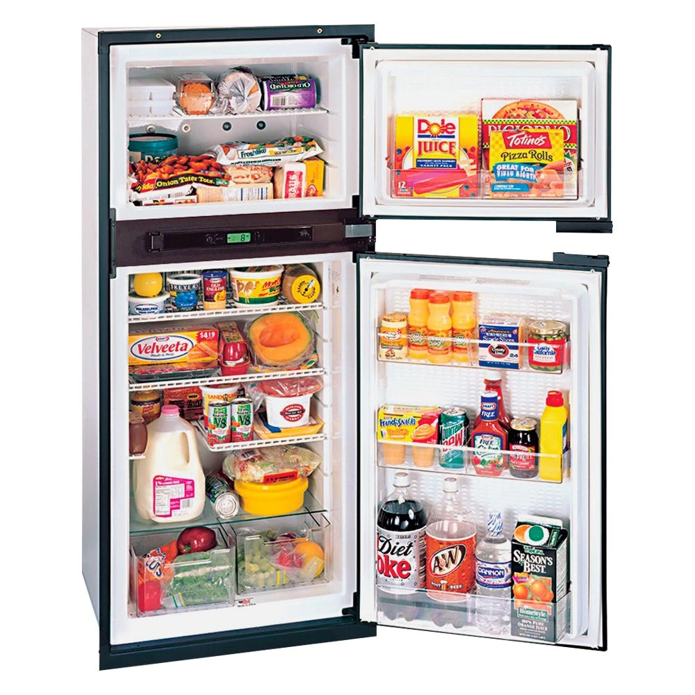 Polar⢠7 cu ft Black Left Hand AC/DC Built-In Double Door RV Refrigerator & Freezer with Fan by NorcoldĀ®. Delivers value, ease-of-use, abundant storage & exceptional styling. Bring the comforts of your home to your motorhome with this top-notch RV appliance to make your camping experience more enjoyable and free of worries. It’s made to be compact and lightweight to suit your RV lifestyle while delivering rugged strength and durability to withstand the extensive use and the elements. Designed to add more convenience and practicality to your RV, this appliance provides an economical and efficient way to tackle your daily routines.