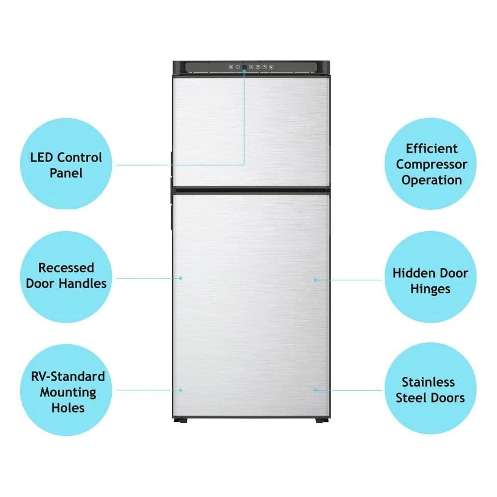Polar™ 8 cu ft AC/DC Built-In Double Door RV Refrigerator & Freezer by Norcold®. Delivers value, ease-of-use, abundant storage & exceptional styling. Bring the comforts of your home to your motorhome with this top-notch RV appliance to make your camping experience more enjoyable and free of worries. It’s made to be compact and lightweight to suit your RV lifestyle while delivering rugged strength and durability to withstand the extensive use and the elements. Designed to add more convenience and practicality to your RV, this appliance provides an economical and efficient way to tackle your daily routines.