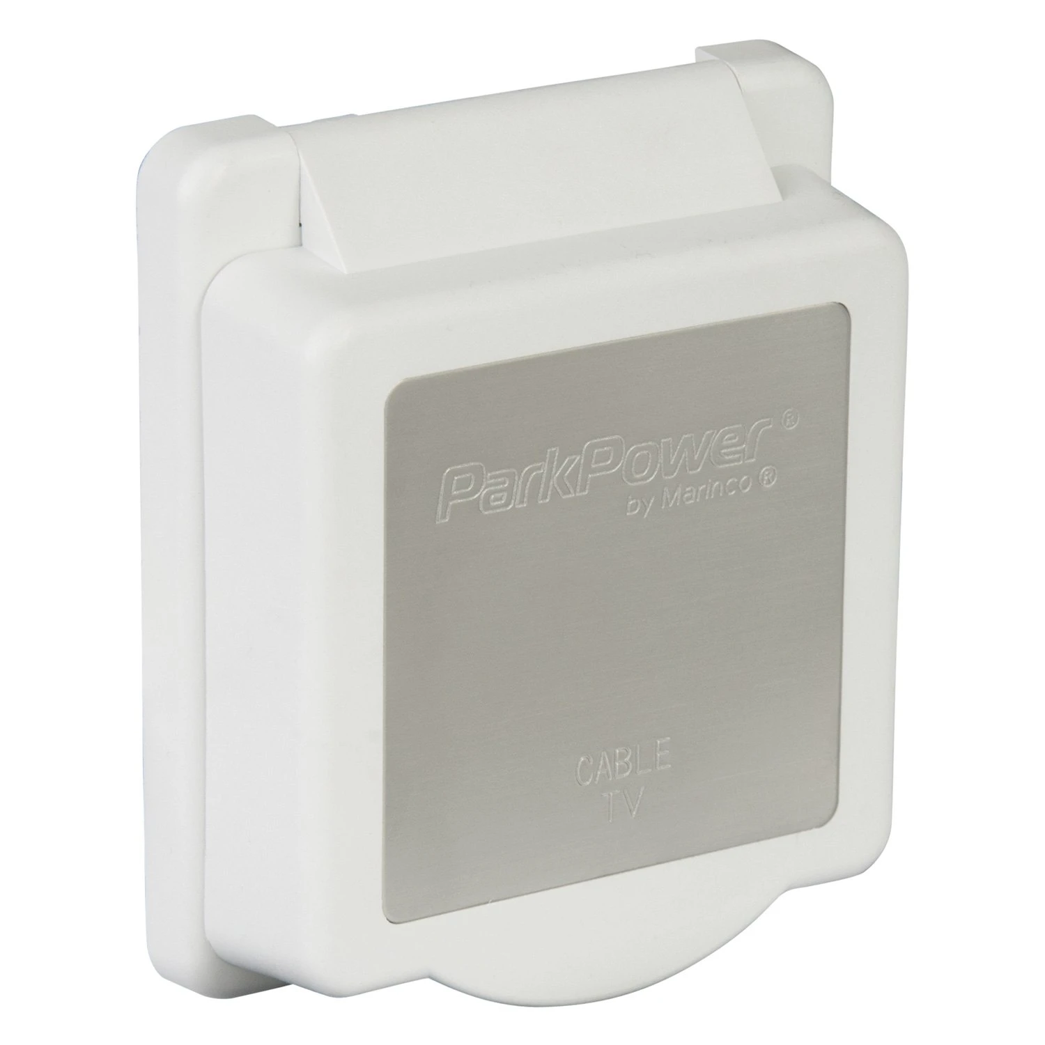 Double TV Outlet by ParkPower®. This top-notch product will help you get the high-quality signal in your RV needed to enjoy maximum entertainment on your next camping trip. Built with your rugged outdoor adventures in mind, this durable product features a robust design to survive the toughest weather conditions. Thanks to high-quality craftsmanship and materials, it ensures the perfect fit and will provide years of reliable function.