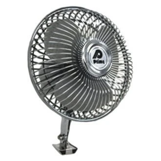 12V DC 1 Speed Fan by Prime Products®. Also features adjustable tilt position and 60 piece chrome fan guard. Complete with wire, switch and mounting bracket for easy installation in a 12V system.