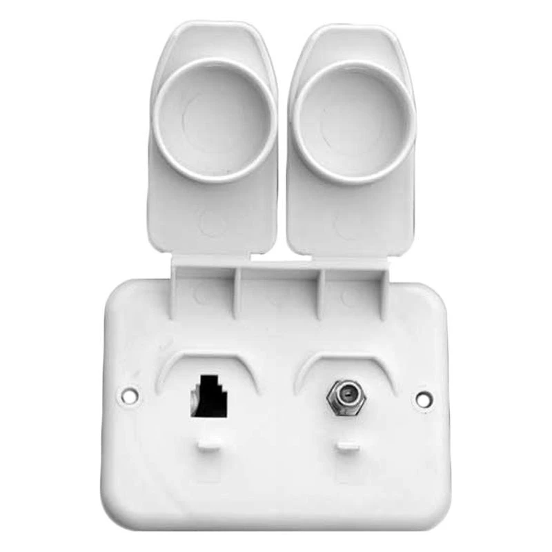White Double TV & Phone Wall Plate by Prime Products®. Weather resistant receptacles for all types of RV’s. This product is made of high-quality materials to serve you for years to come. Designed using state-of-the-art technology and with customers in mind. It will meet your needs and deliver great quality at an affordable cost.