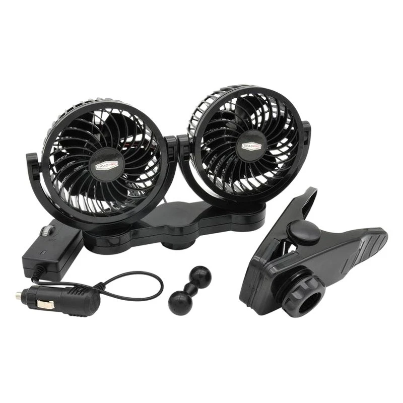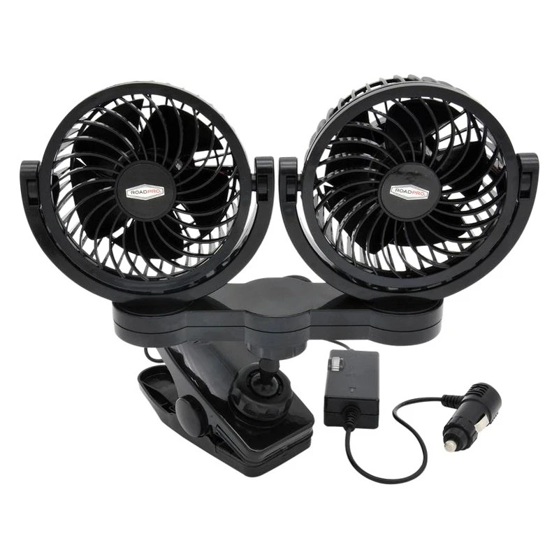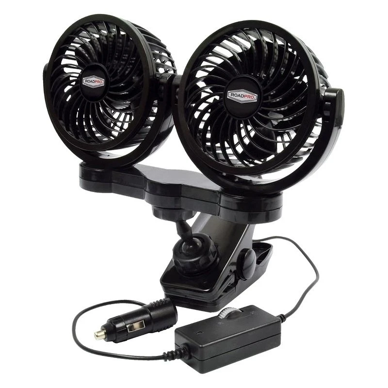 12V DC Adjustable Speed Dual Fan with Mounting Clip by RoadPro®. Products bring you comfort, convenience, entertainment and safety while you are traveling away from home. RoadPro has everything you need to be your most comfortable and your most productive out on the road – no matter what you do.