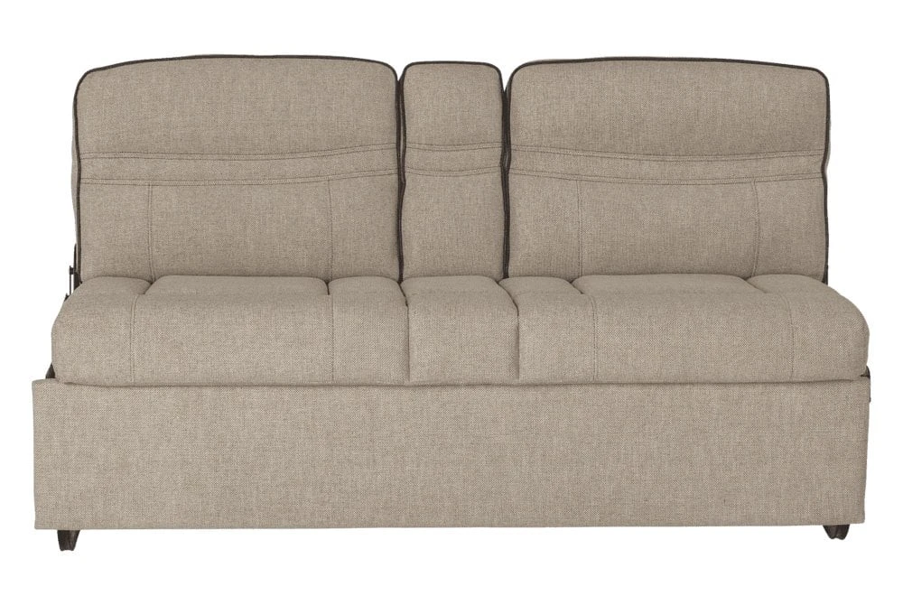 62″ Norlina Jackknife RV Sofa with Kickboard (2020129836) by Thomas Payne®. Your front row seat to adventure just got cozier. Perfect for 5th wheels, travel trailers, and motorhomes alike, the Jackknife Sofa gives you a stylish sitting space by day, and extra sleeping area by night. In one simple motion, this low maintenance sofa can transition to a bed and back again. Featuring a fold-down center with cupholders, this camper sofa offers functionality, comfort, and style, so you can travel luxuriously, no matter where your adventures take you.