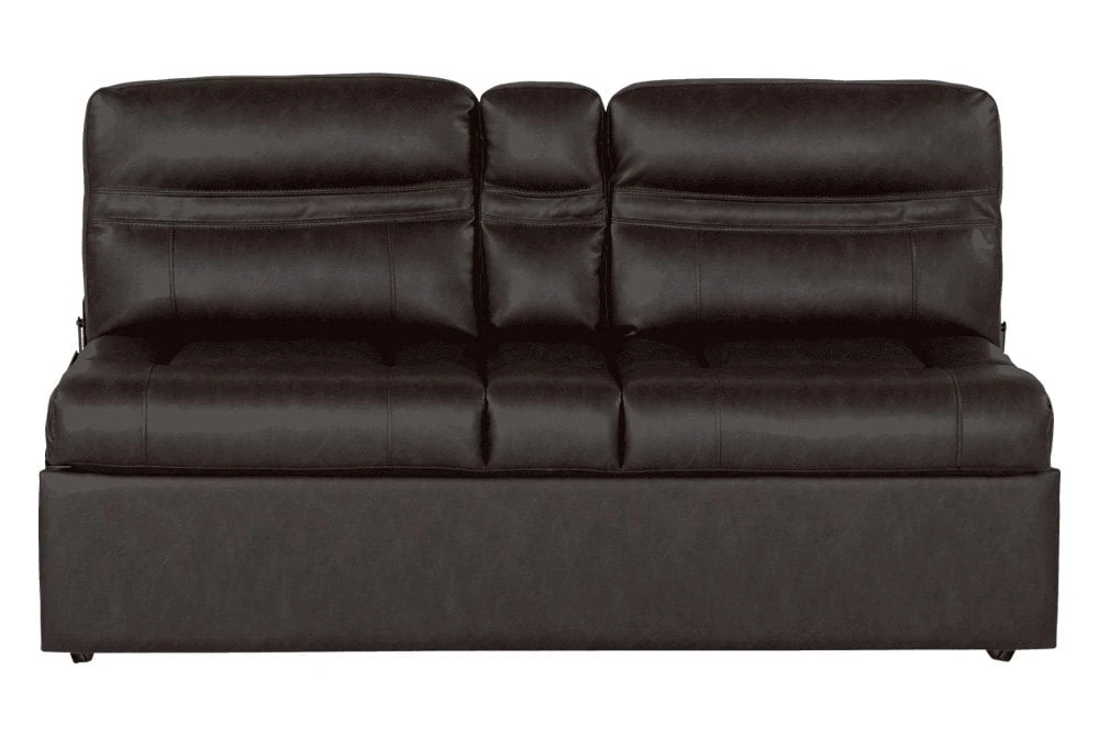 62″ Millbrae Jackknife RV Sofa with Kickboard by Thomas Payne®. Your front row seat to adventure just got cozier. Perfect for 5th wheels, travel trailers, and motorhomes alike, the Jackknife Sofa gives you a stylish sitting space by day, and extra sleeping area by night. In one simple motion, this low maintenance sofa can transition to a bed and back again. Featuring a fold-down center with cupholders, this camper sofa offers functionality, comfort, and style, so you can travel luxuriously, no matter where your adventures take you.