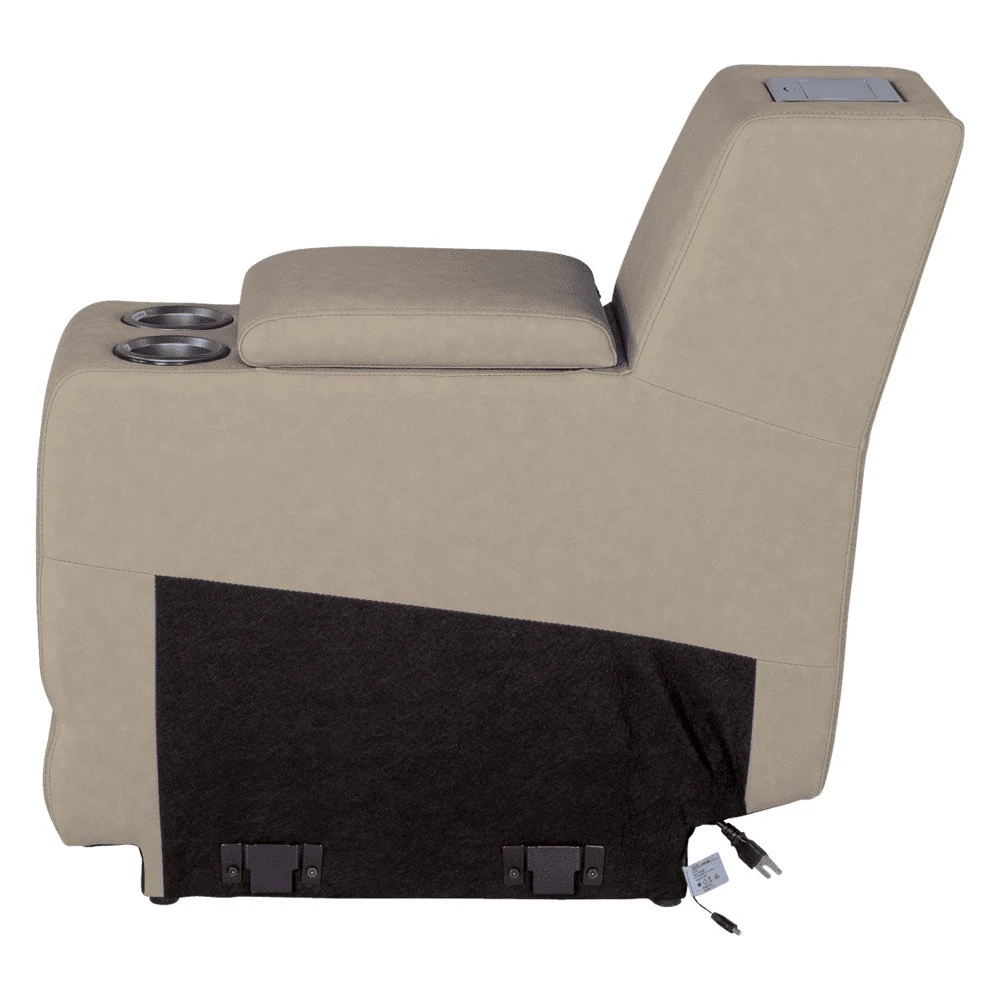 Seismic Series Altoona RV Theater Seating Center Console by Thomas Payne®. Seismic Series Theater Seating turns your RV living space into a high-tech, extra-cozy relaxation sanctuary. Featuring the all-new Thomas Payne Power Port, the best part about this theater-style sofa is that you can conveniently add new line of Thomas Payne accessories to your living space. From wine holders and desks to a wireless phone charger, reading light, armrest tray, and fan – all you have to do is plug your accessory into the Power Port and enjoy. Comes with fully equipped power recline?and lumbar functionalities, heated seats and massage options,?a chaise-style footrest, LED lighting, lighted?dual?cupholders, an integrated storage compartment, and fold-down center console.