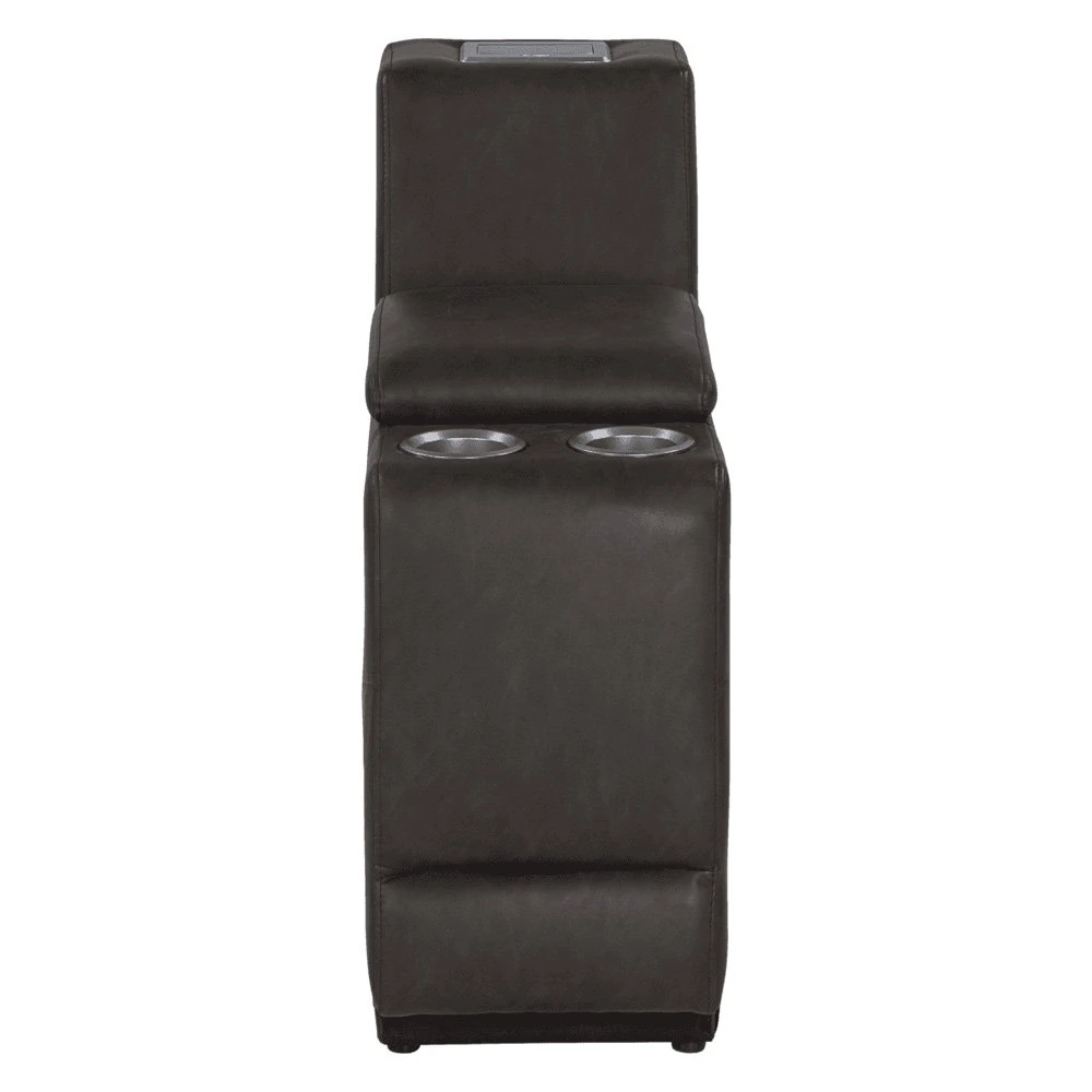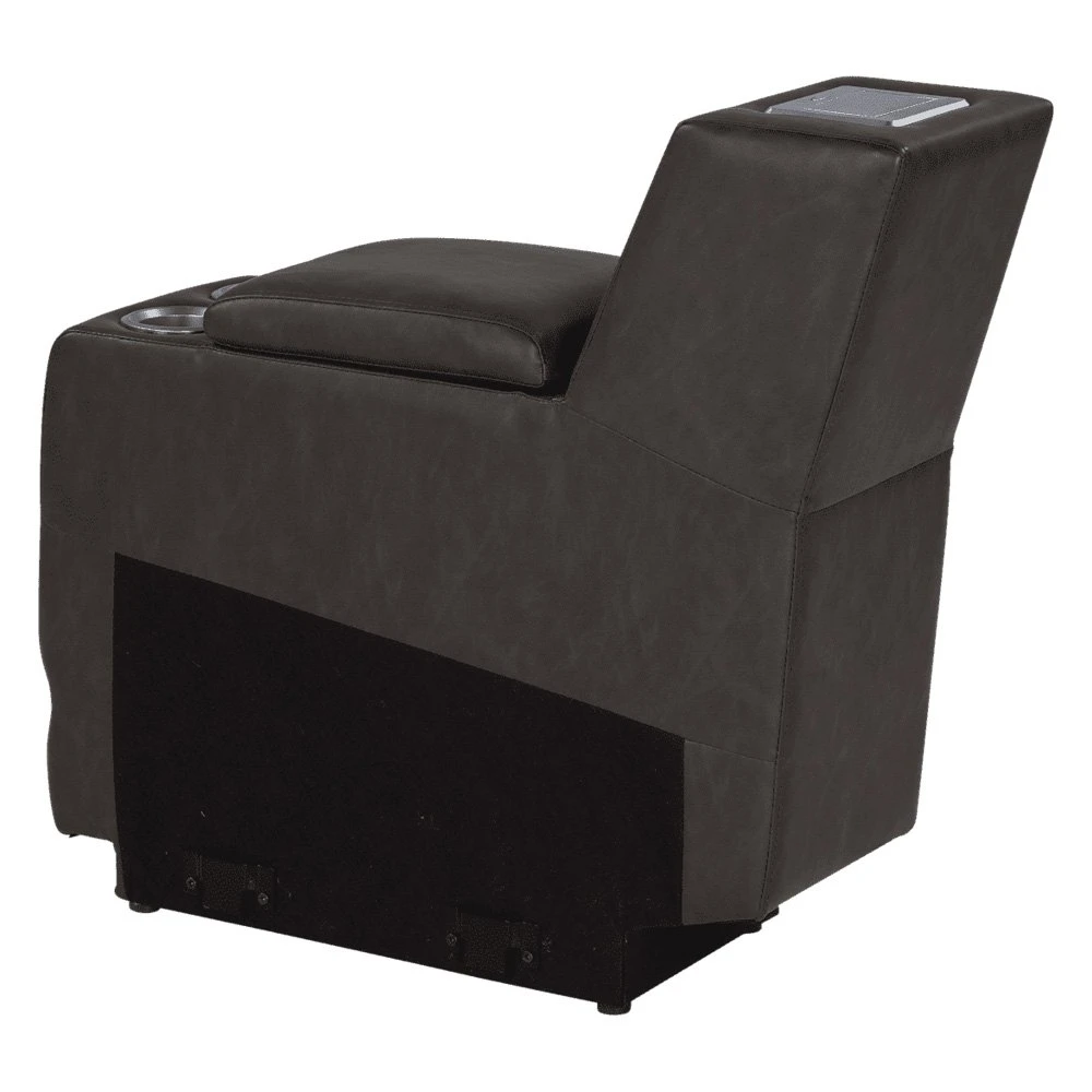 Seismic Series Millbrae RV Theater Seating Center Console by Thomas Payne®. Seismic Series Theater Seating turns your RV living space into a high-tech, extra-cozy relaxation sanctuary. Featuring the all-new Thomas Payne Power Port, the best part about this theater-style sofa is that you can conveniently add new line of Thomas Payne accessories to your living space. From wine holders and desks to a wireless phone charger, reading light, armrest tray, and fan – all you have to do is plug your accessory into the Power Port and enjoy. Comes with fully equipped power recline?and lumbar functionalities, heated seats and massage options,?a chaise-style footrest, LED lighting, lighted?dual?cupholders, an integrated storage compartment, and fold-down center console.