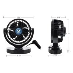 - Complete and ready to install in cars, trucks, vans, motor homes, boat or recreation vehicles 360 degree rotation, universal positioning Improve vehicle ventilation, air circulation, and window de-misting Easy installation, double sided tape included Standard cigarette light plug with fuse inside