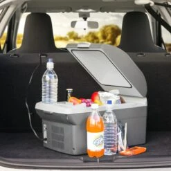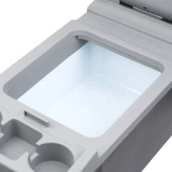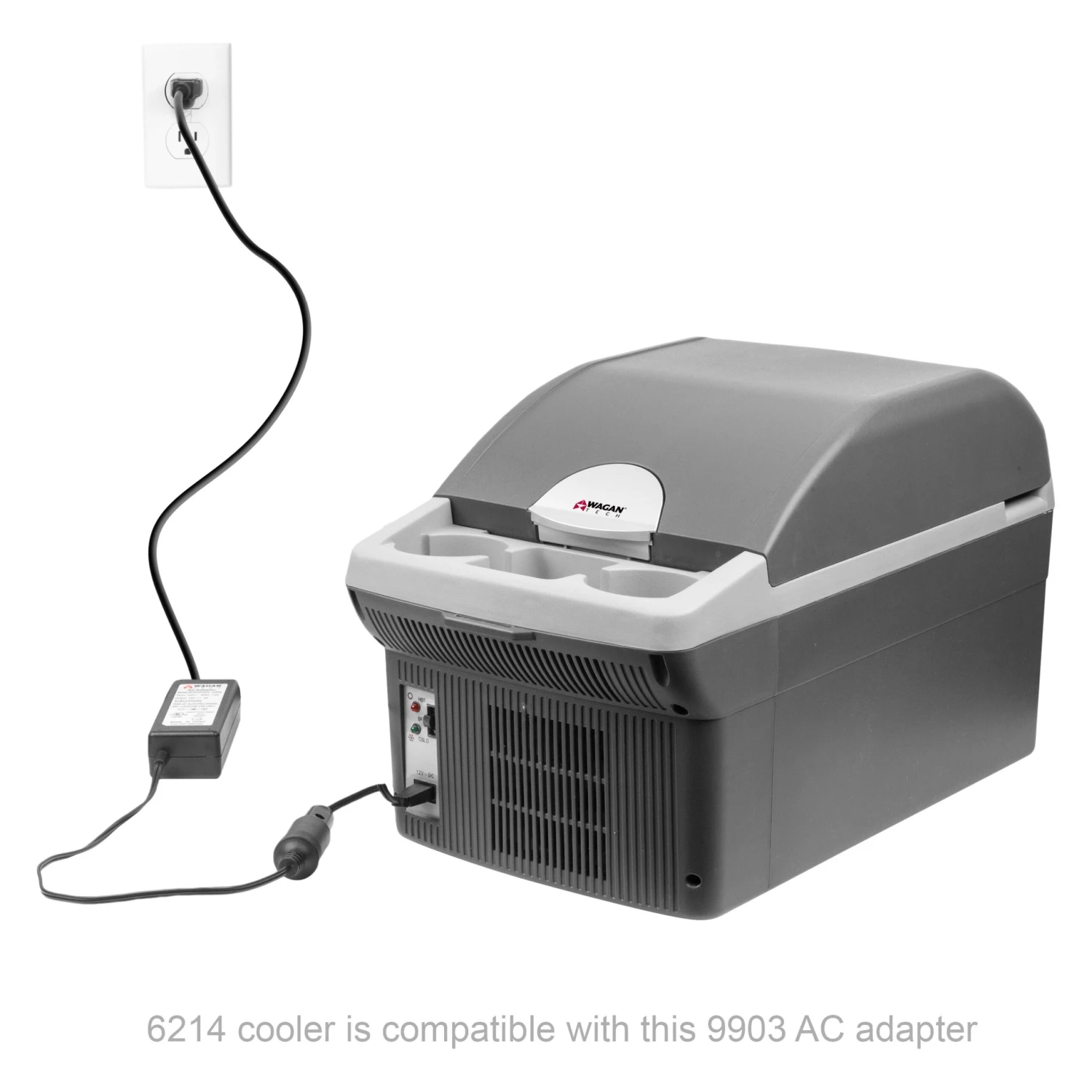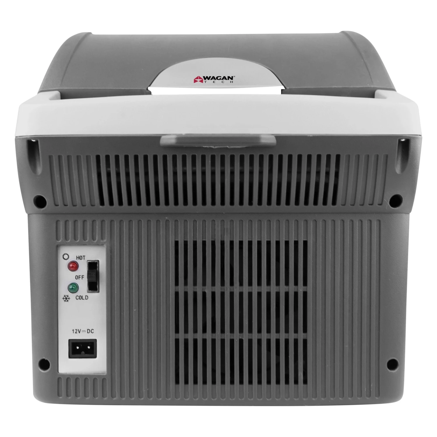 12V DC Personal Fridge with Warmer (6214) by Wagan®. Portable cooler and warmer with 2 cup holders! No ice needed to keep your food and drinks cold. Holds up to eighteen 12-oz cans! 12 volt DC-powered.