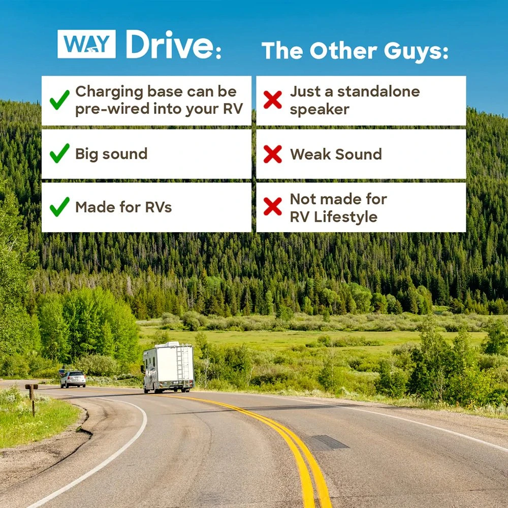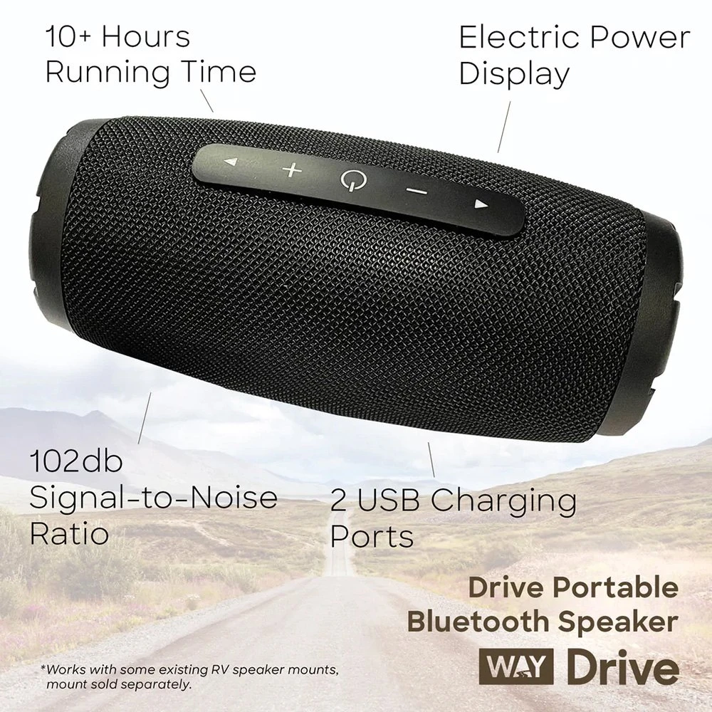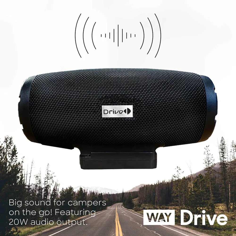 Drive⢠Portable Bluetooth Speaker by Way Interglobal®. High-Quality Audio on the Go. The Drive Portable Bluetooth Speaker gives you high-quality sound no matter where your RV adventures may lead.