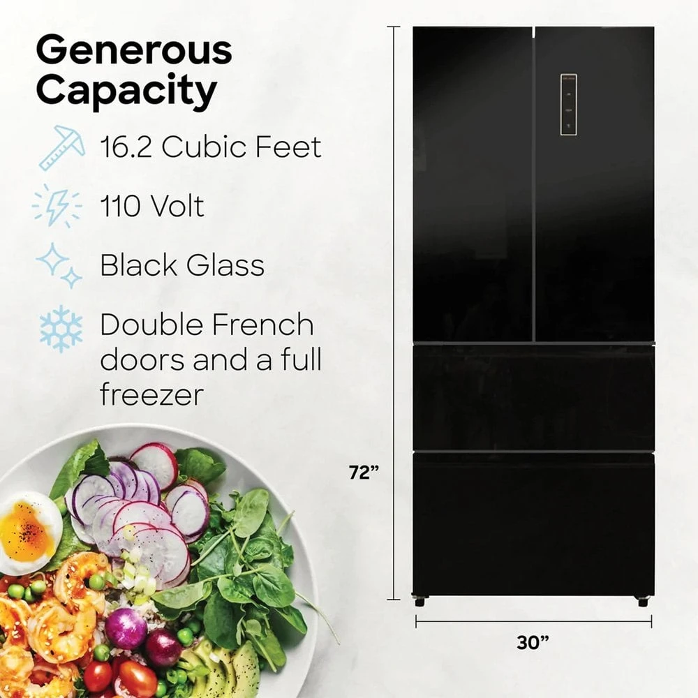 - Ample storage space – Crisper bins, dual door shelving, and freezer drawers