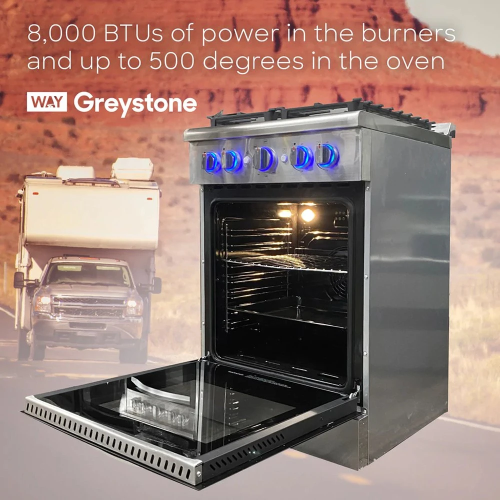 Go big for your home on the road with the Greystone 24″ Gas Range!