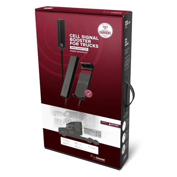 Black Cell Signal Booster for Trucks by weBoost®. Drive Sleek OTR is our in-vehicle cell signal booster for solo truckers. It’s designed to boost coverage for any phone that fits within its cradle. This product is made of high-quality materials to serve you for years to come. Designed using state-of-the-art technology and with customers in mind. It will meet your needs and deliver great quality at an affordable cost.