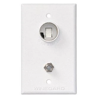 TG Series Single TV Wall Plate by Winegard®. TV outlet with 75 ohm coax cable input and output, and a +12 VDC receptacle. Mounts flush in standard electrical box. This top-grade product is expertly made in compliance with stringent industry standards to offer a fusion of a well-balanced design and high level of craftsmanship. Manufactured from industry-leading materials using up-to-date equipment, it ensures everlasting reliability and enduring value. This product is distinguished by total quality assurance, unsurpassed by anybody else.